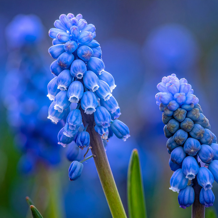 짙은 남청색과 하얀 끝동이 선명한 네덜란드산 다크아이즈 무스카리.