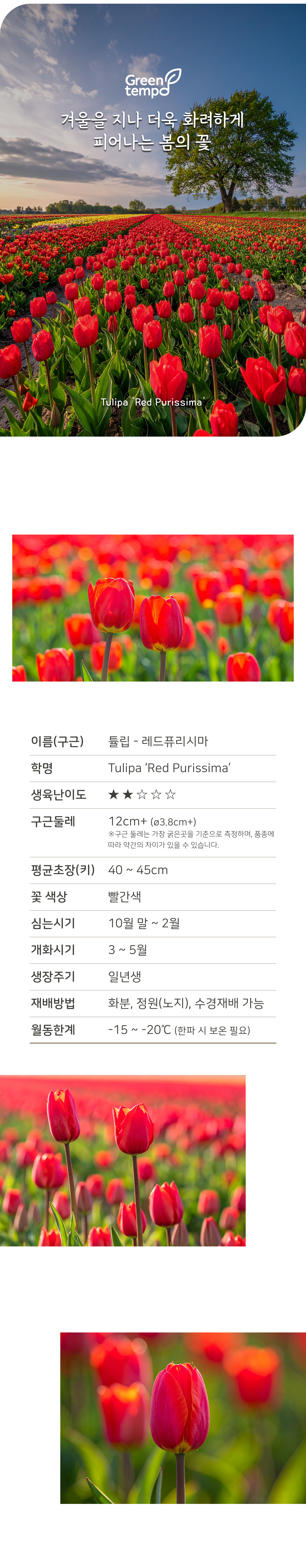 유럽직수입 고급 구근으로 가을에 심어 봄에 화려한 붉은 꽃을 감상하세요.
